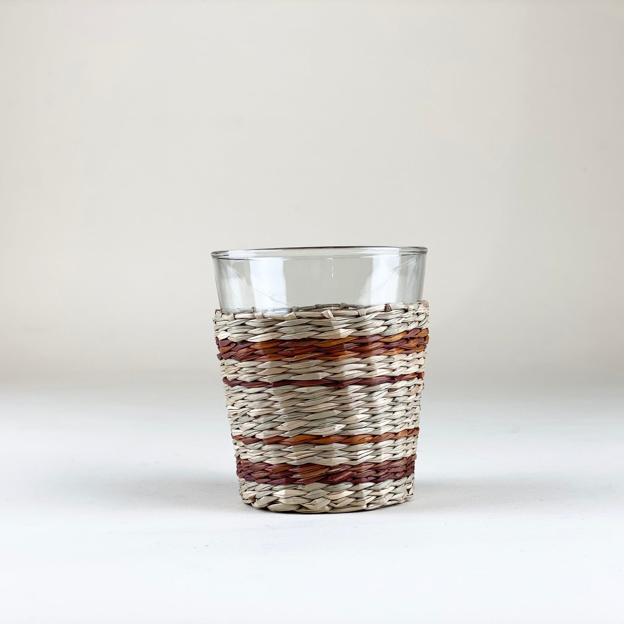 Wide tumbler glass. Removable seagrass wrapping. Charming size for a cocktail or dessert. Pairs well with the Indochine Pitcher (as shown in second picture, Indochine Highball also in image).
