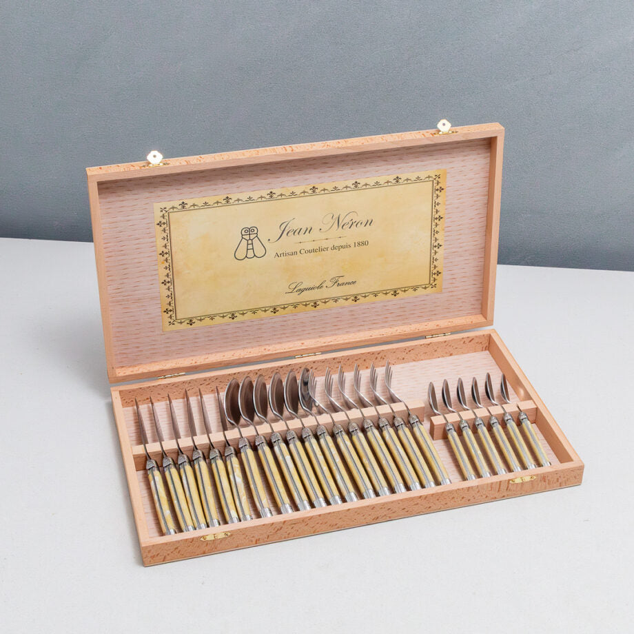 The Laguiole style is world renowned for a legacy of craftsmanship and quality and originates from the Midi-Pyrenees region of France. Our Laguiole pieces come from Coutellerie Jean Néron, a third generation family run company specializing in Laguiole style coutellerie or cutlery.